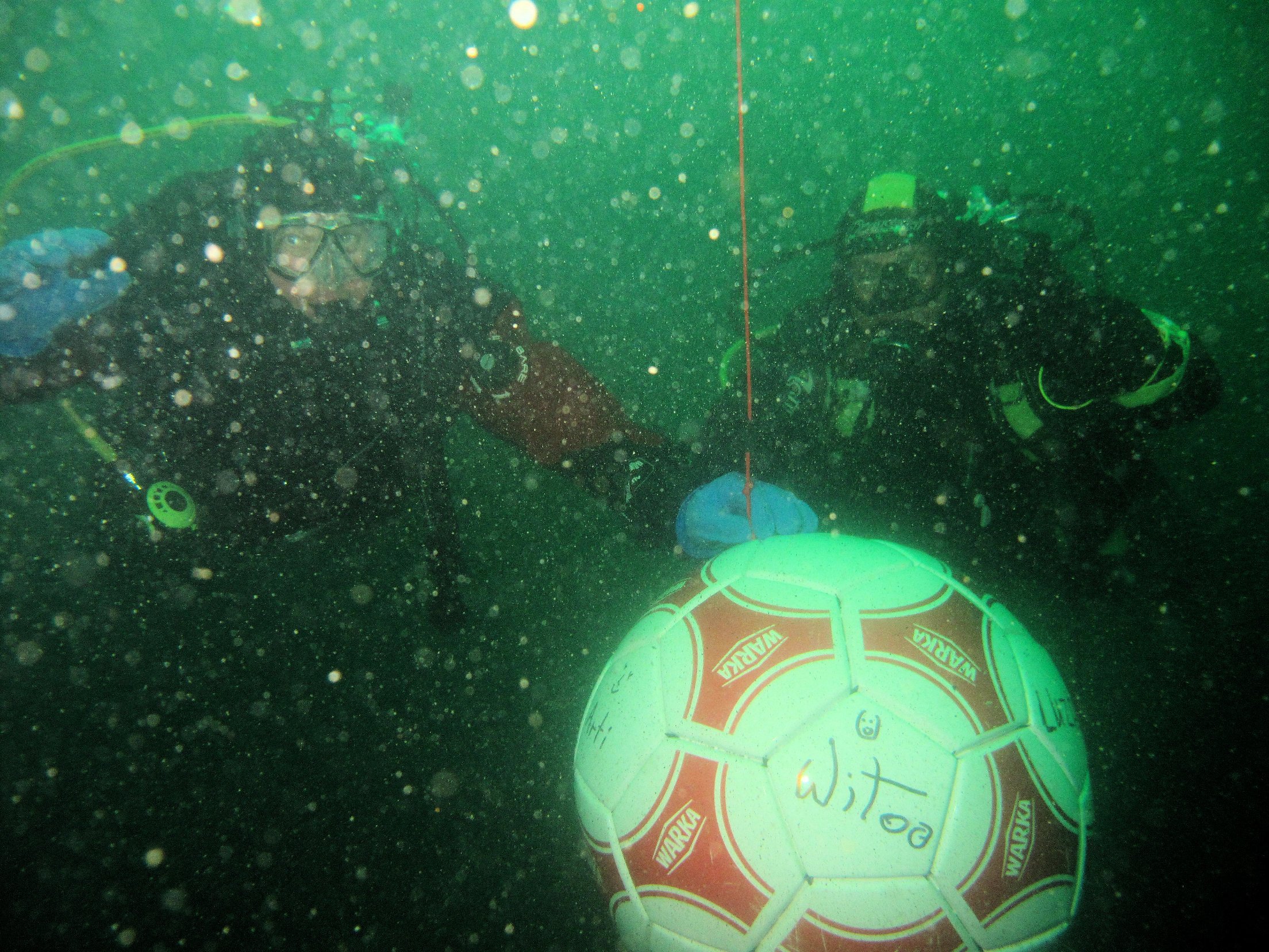 jak pisałem jest kolejna zajawka! Z klanem Katrów ( don Vitto + Artek ) od wczoraj odkopujemy coś na kształt łyżki od koparki !? Idzie powoli - sponsorów brak!!! oznaczyliśmy wykopalisko bojką ( to kolorowa piłka ) , wisi na głębokości 22 m - trochę szukania i możecie pomóc . Sponsorom podamy namiary.