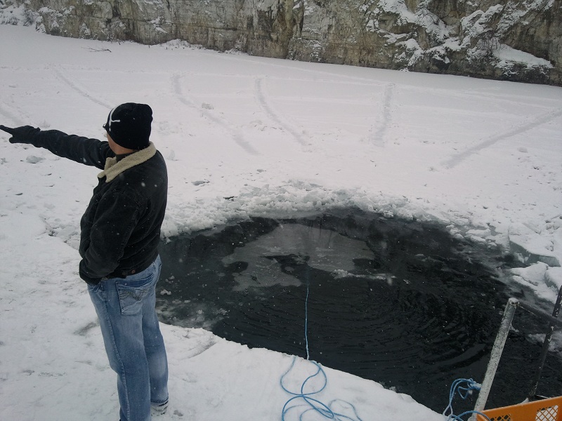 w każdym razie do konkretów: przy drabince po prawej lód wytopiony na tyle, że da się spokojnie wejść, ale tylko tam. stare przeręble np. nad platformą są pokryte na tyle grubym lodem że można spokojnie po nim chodzić - zrobiłam spacer do połowy akwenu po lodzie, więc.. możliwe że jeszcze trochę ten lód wytrzyma.