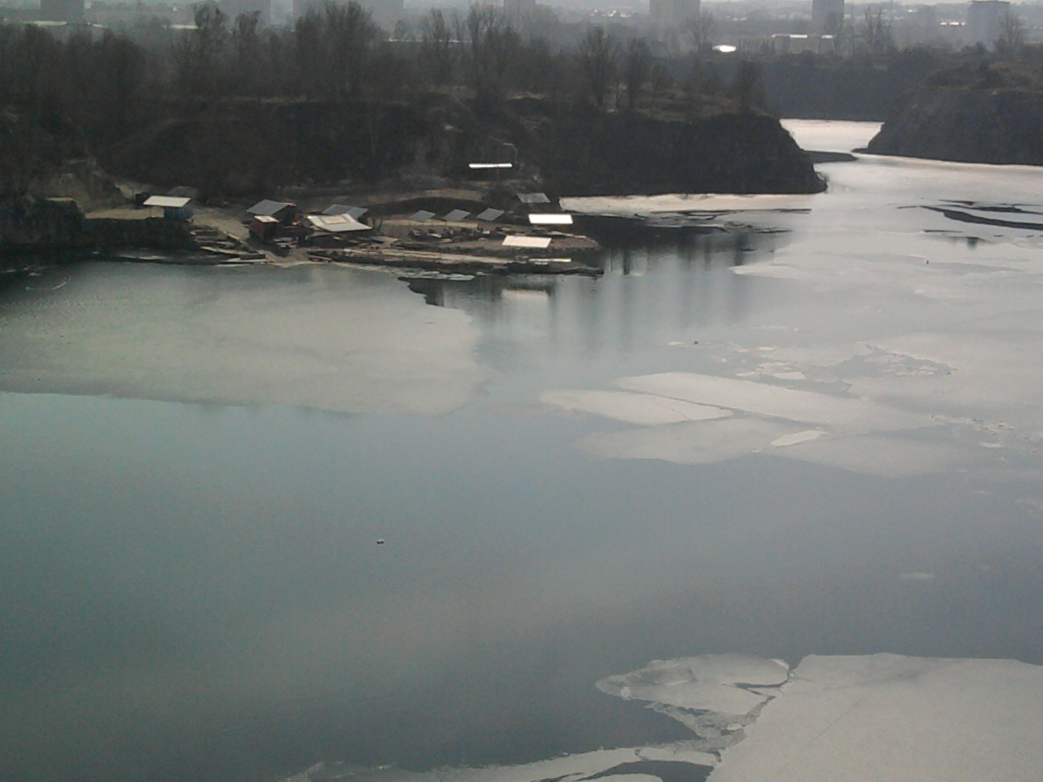 na Koparach dla odmiany już niewiele brakuje do OW - lód dość cienki, wytopiony całkiem przy pomostach, nie próbowałam chodzić po nim ani przebić od spodu, ale w najbliższy weekend, jeśli nie zmrozi, to może już wiele z niego nie zostać.