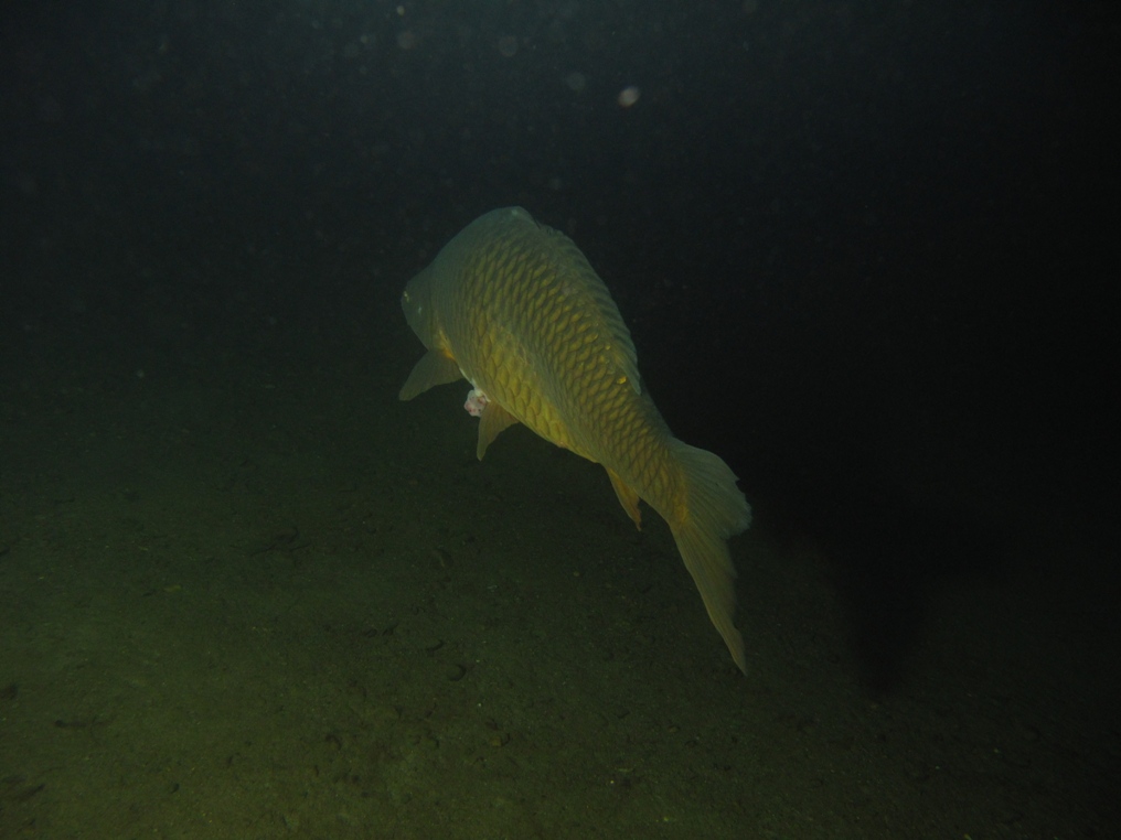 ( prawdopodobnie jest po trafieniu kuszą - rana na lewym boku na to wskazuje ). Rybek było mnóstwo na nocce.