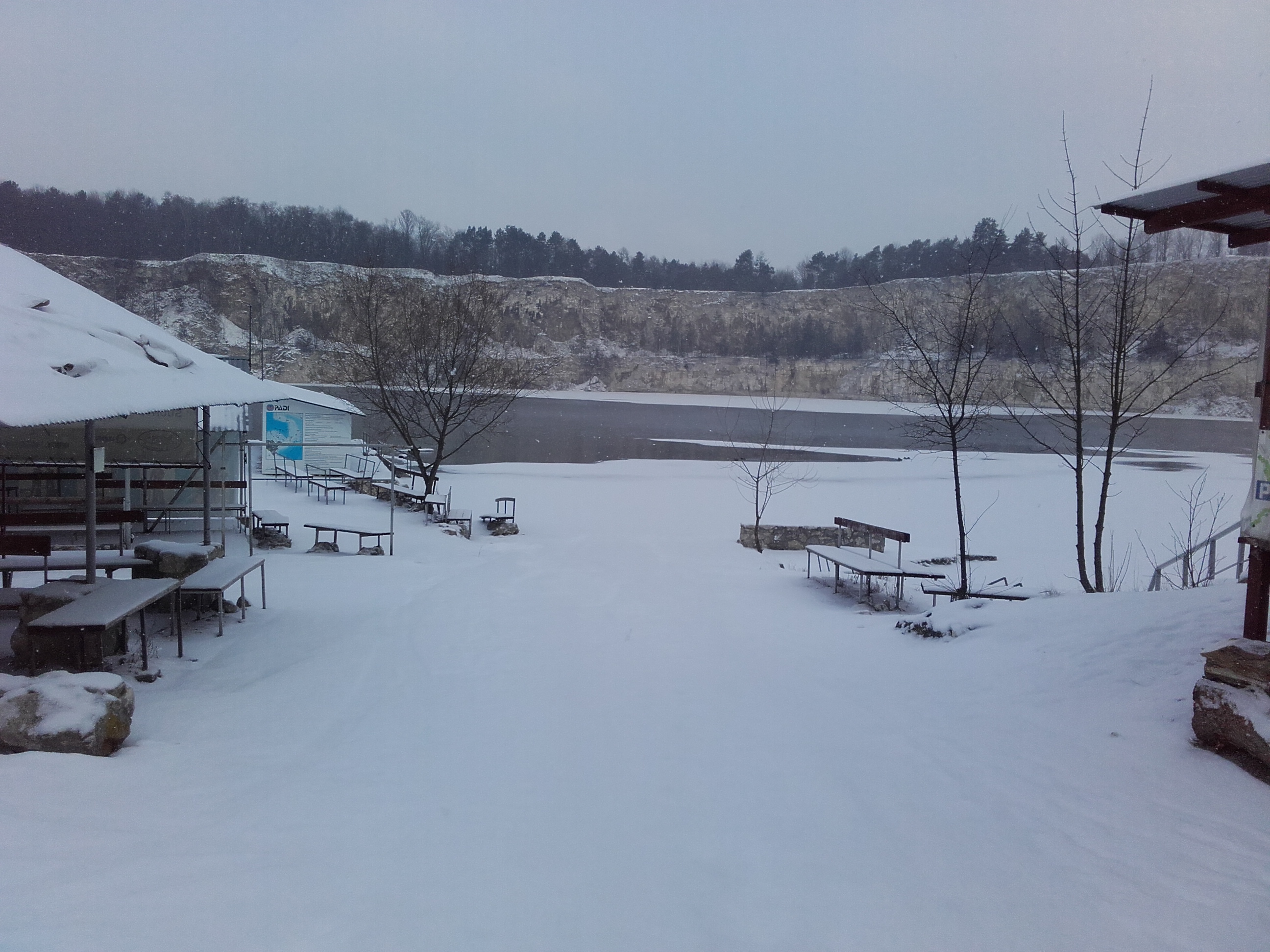 Na razie lód ma jakieś 2cm grubości i pokrywa jakieś 60-70% akwenu.